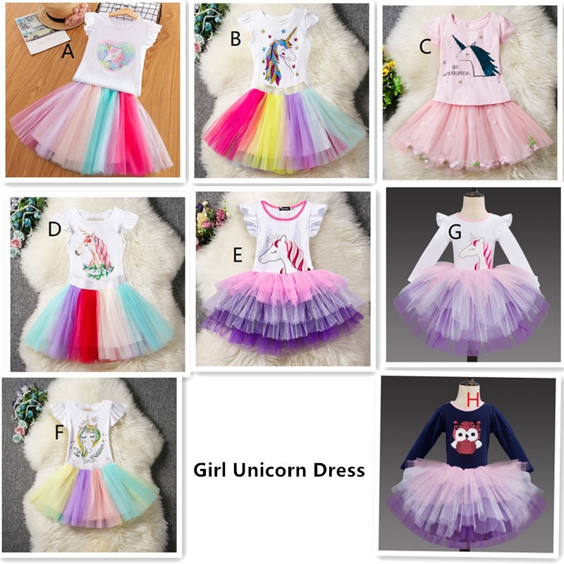 Unicorn Tutu Dress Baby Girl Clothes Fashion Kids Party Rainbow Dresses Shopee Malaysia
